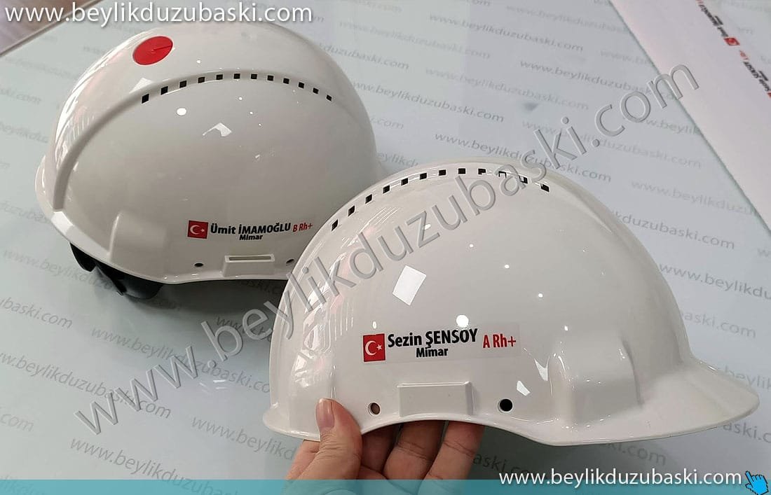 baret baskı, üzerine etiket baskı, acil üretim, baskes etiket, kaliteli etiket baskısı, barete baskı, 3M baret üzerine baskı