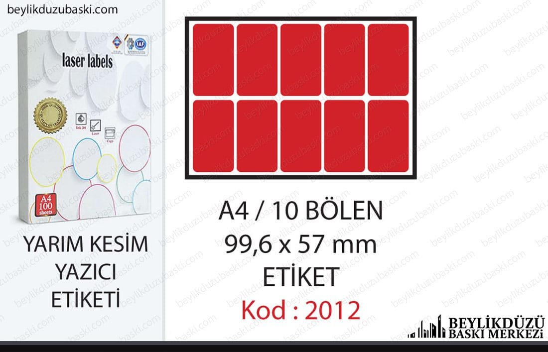 Kesim ebadı : A4 sayfayı 10 a bölen etiket üründür / 99,6 x 57 mm etiket ebadı