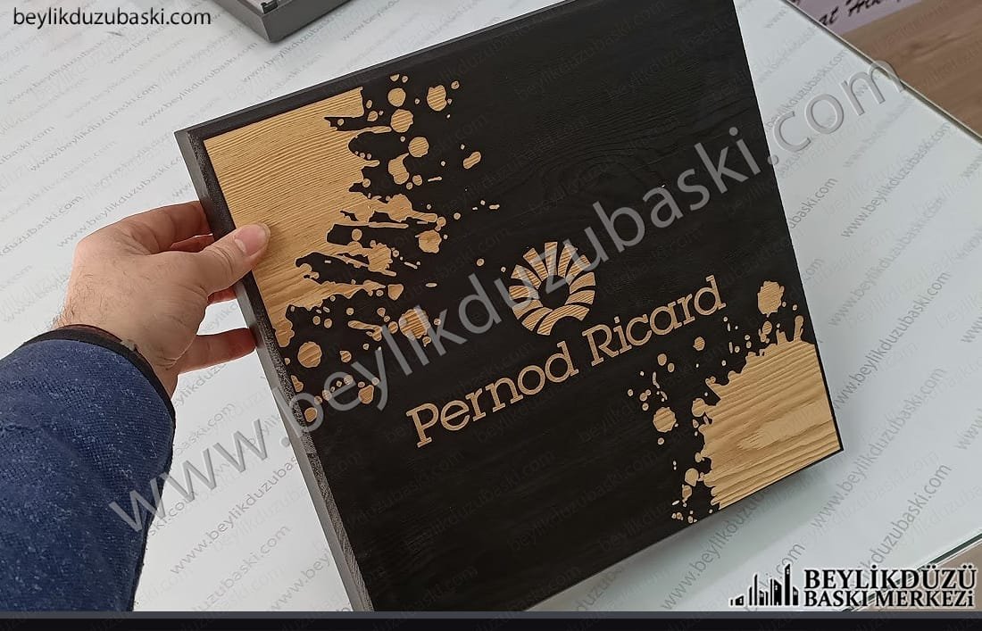 ahşap lazer kazıma, 35 cm ebadında ahşap kapak üzerine, lazer ile logo ve tasarım baskı, hızlı lazer ile baskı, lazer ile yakma, tarama, baskı yapılması, lazer baskı merkezi