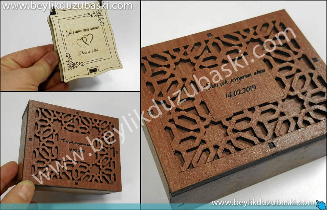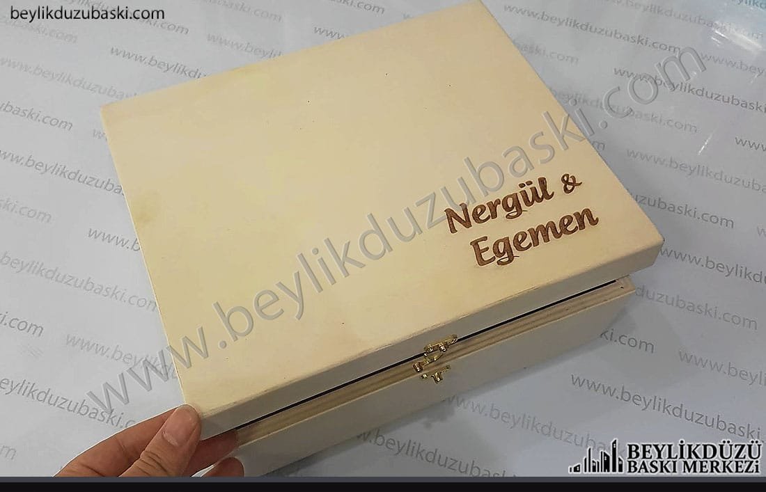 ahşap kutu üzerine baskı, ahşap üzerine baskı, lazer ile ahşap üzerine baskı, ürünü müşteri getirir, baskıyı bekler alır, grafik tasarım desteği verilir