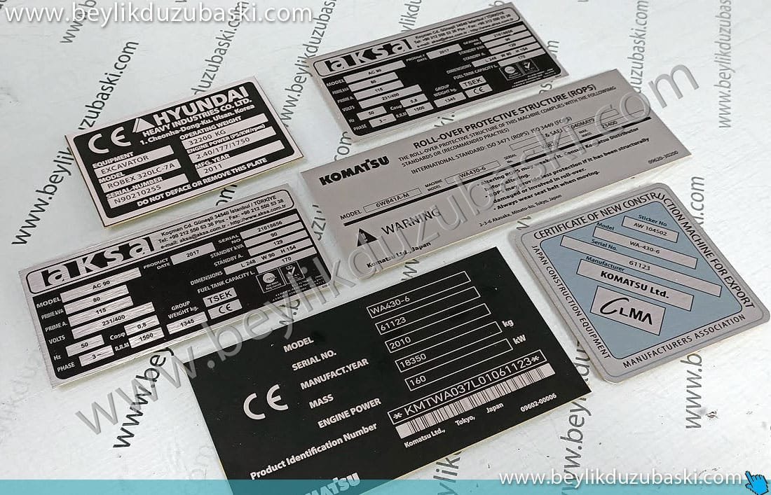 aksa, komatsu, hyundai, metal plaka baskısı, metal etiket baskısı, silinen yıpranan, metal plakalerın yeniden revizesi mümkün, acil üretim, aynı gün kargo, kaliteli metal plaka imalatı