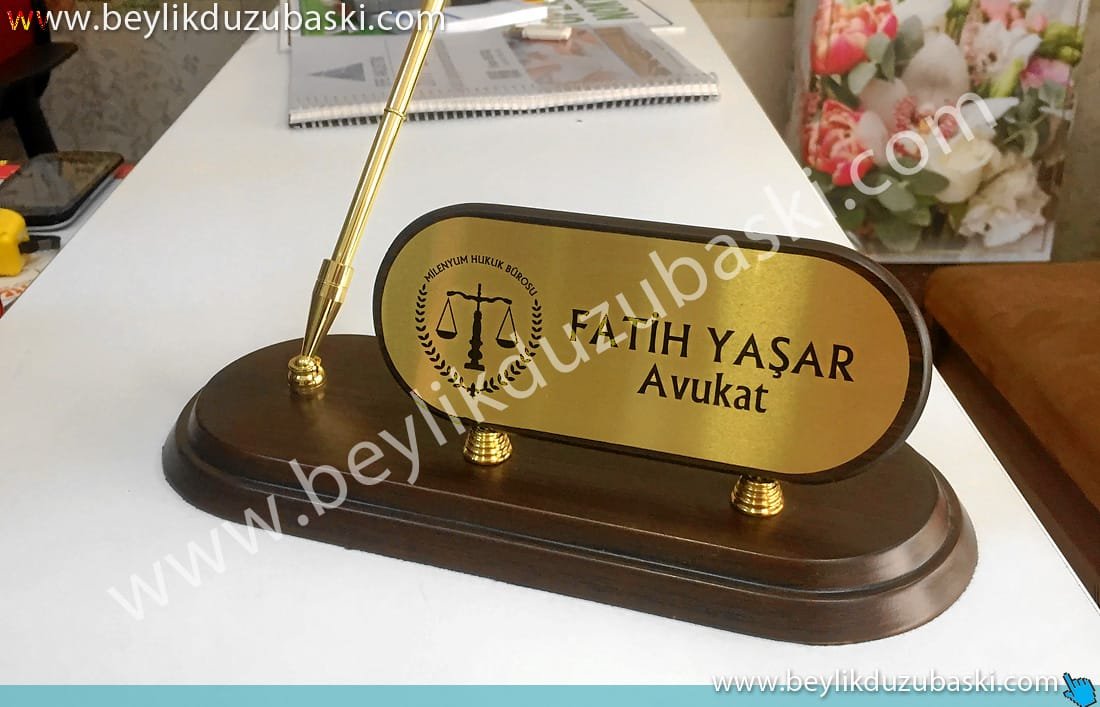 avukat için ahşap masa isimliği örneğidir, kaliteli ahşap masa isimliği ürünleri, acil isim baskılı masa isimliği