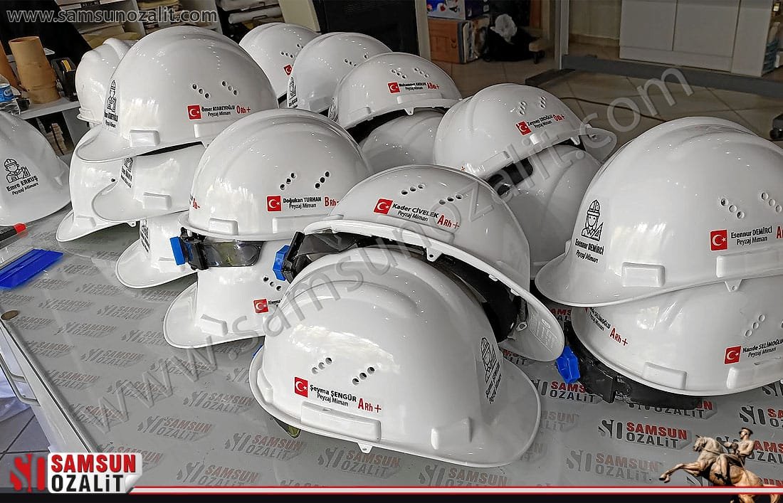etiket baskılı, baret, aynı gün teslim, logolu, isim ünvan, bayrak ve kan grubu baskılı, güvenlik bareti, inşaat baret baskılı