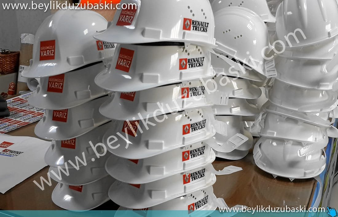 acil baskılı baret imalatı, baret üzerine etiket baskısı