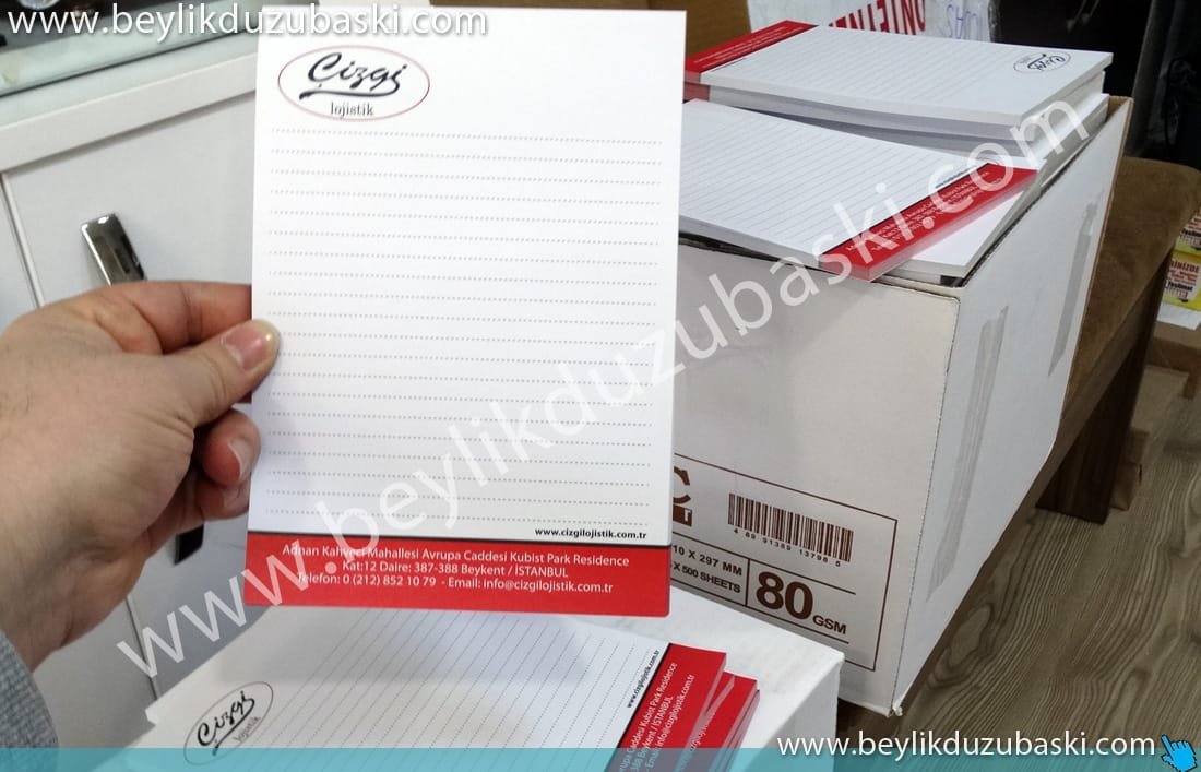yarım boy ebadında 2 renk baskılı bloknot üründür