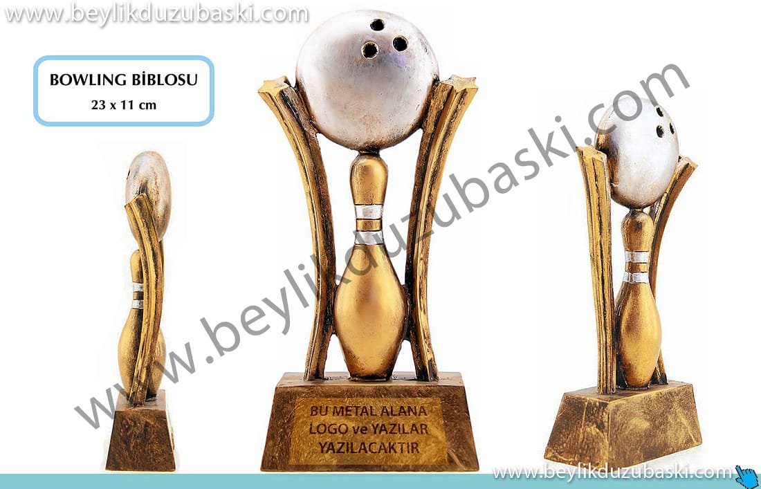3D olarak tasarlanmış masa üzeri bowling ödül kupa örneğimizdir,