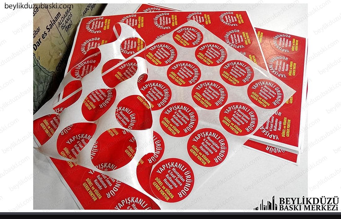 6 cm çapında büyük etiket, adetli alım için verilen fiyat, aynı gün baskı ve kargo