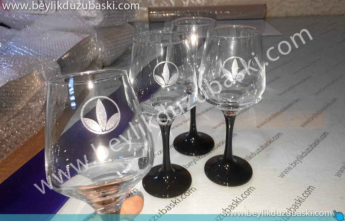 Cam kadeh üzerine lazer ile logo baskı