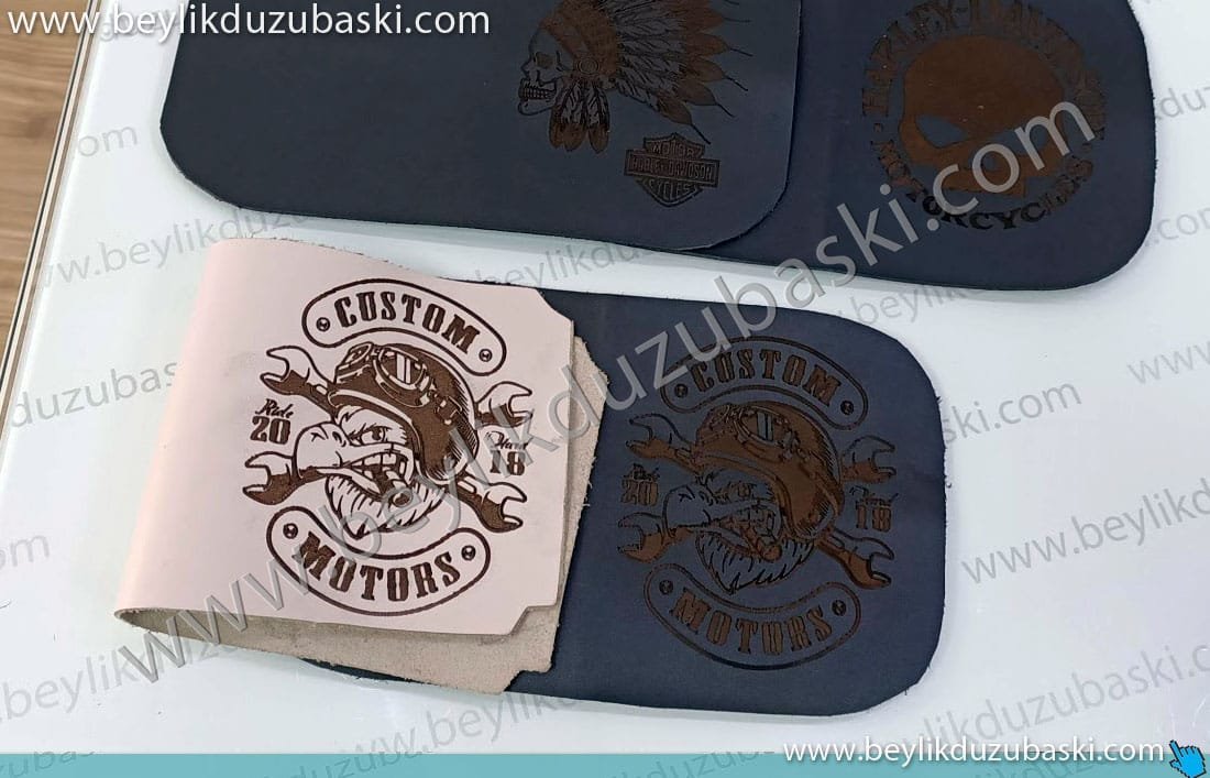 Deri üzerine renkli baskı, lazer baskı, deriye baskı, hızlı üretim, bekle al, tasarım desteği verilir, numune baskı yapılır, Deri üzerine Baskı, Lazer yakma kazıma, Uv baskı, fiyat numune maliyetidir, adetli ürünlerde değişir