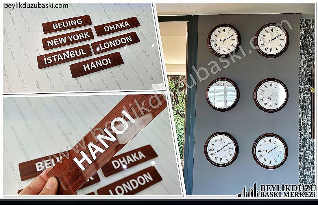 dünya saati altına şehir isimleri yazan metal plaka, saat altına metal plaka baskı, dünya saati için metal şehir isimleri baskısı, metal şehir isimi baskısı, metal plaka baskısı