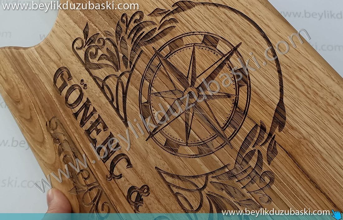 Ahşap hamur tahtası, üzerine lazer ile kazıma, öerneğidir, lazer ile ahşap ürünlere markalam, kazıma, yapılmaktadır, beylikdüzü acil lazer işlem merkezi