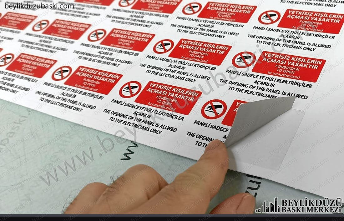 elektrikçi etiketi, yetkisiz kişiler açamaz etiketi, makina için, yetkili personel, uyarı etiketi, kaliteli etiket baskı, hızlı üretim, aynı gün kargo, ebat ve adede göre fiyat alınız