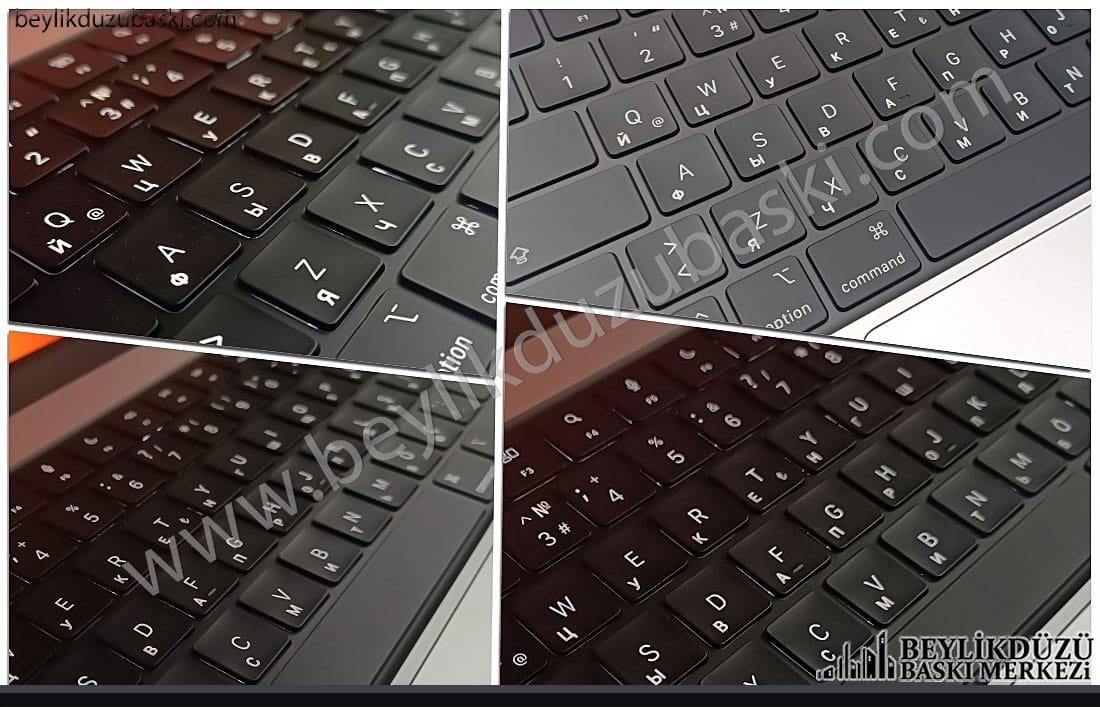 Laptop klavye baskı, klavye üzerine arapça baskı, lazer ile ışıklı klavye baskısı