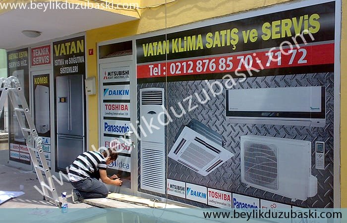 Vatan klima için cam üzerine folyo basıkısı yapılmıştır, Grafik tasarım firmamız tarafından yapılmıştır. Samsun Grafik tasarım merkezi
