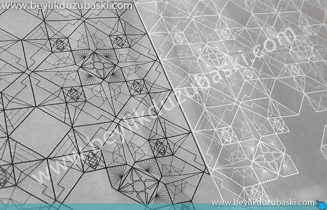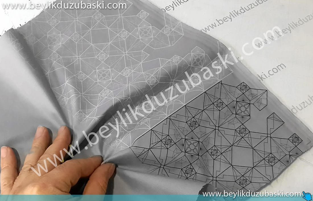 düz kumaş üzerine beyaz ve renki olarak baskı yapılmıştır,