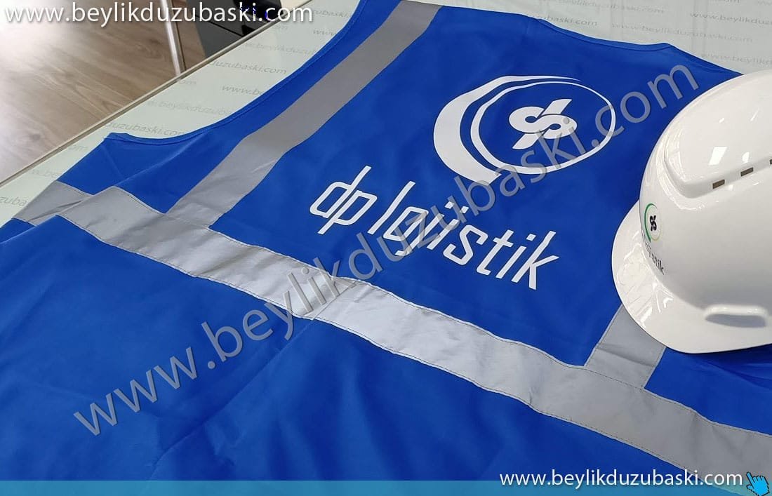 Print on dark blue vest, print on dark vest with white, emergency vest print, quality vest prints, beylikdüzü emergency vest and hard hat printing center