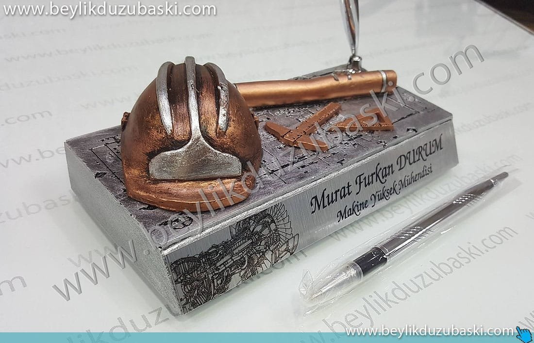 makine yüksek mühendisi için, masa üzeri hediye ürün baskısı, kaliteli masa isimliği, el yapımı, yerli üretim, el boyaması, başka yerde muadili olmayan ürün