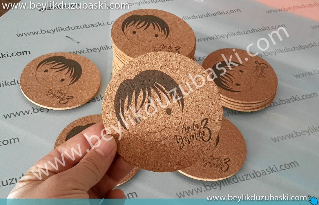 bardak altı, mantar bardak altı, az adet üretim mümkün, özel tasarım bardak altı baskısı, gerçek mantar üzerine baskı, hızlı üretim