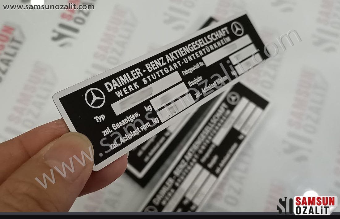 Mercedes şasi motor plaka baskısı, daimler motor numarası, eski araçlar için, silinmiş yıpranmış, motor etiketlerinin, aslına uygun yeniden tasarlanması yapılır, motor numara baskılı metal, aslına uygun, yönetmeliklere uygun metal plaka baskısı, ısıya dış mekana dayanıklı şasi numarası imalatı