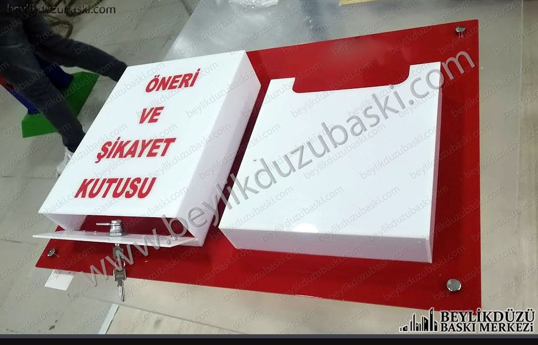 öneri ve şikayet kutusu, özel üretim, pleksi malzeme, renk değiştirilebilir, anahtarlı, cepli dosya gözlü, öneri kutusu, şikayet kutusu, belge kutusu