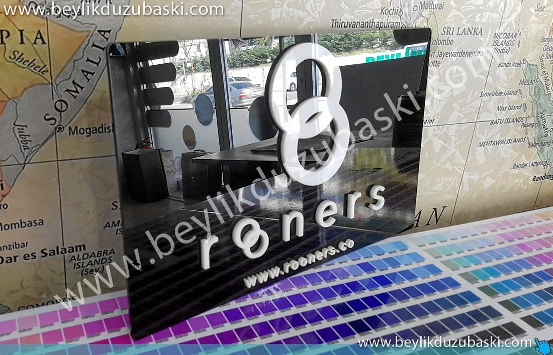 kabartma pleksi tabela imalatı, siyah pleksi zemin, beyaz pleksi harflerle kabartma yapılmış tabela, ofis giriş tabelası, kaliteli ofis kapı tabelası