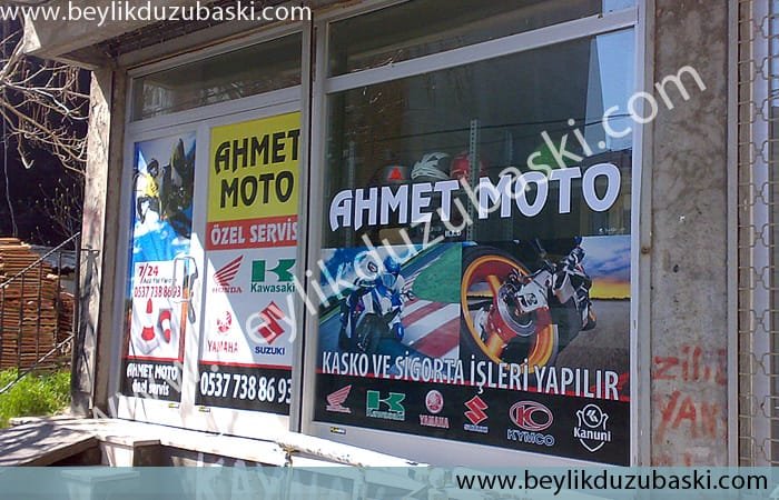 À l'intérieur de l'école, sur verre, impression sur film, application, impression de logo et de photo possible, application le jour même, aide à l'impression et à la conception, centre d'impression beylikdüzü