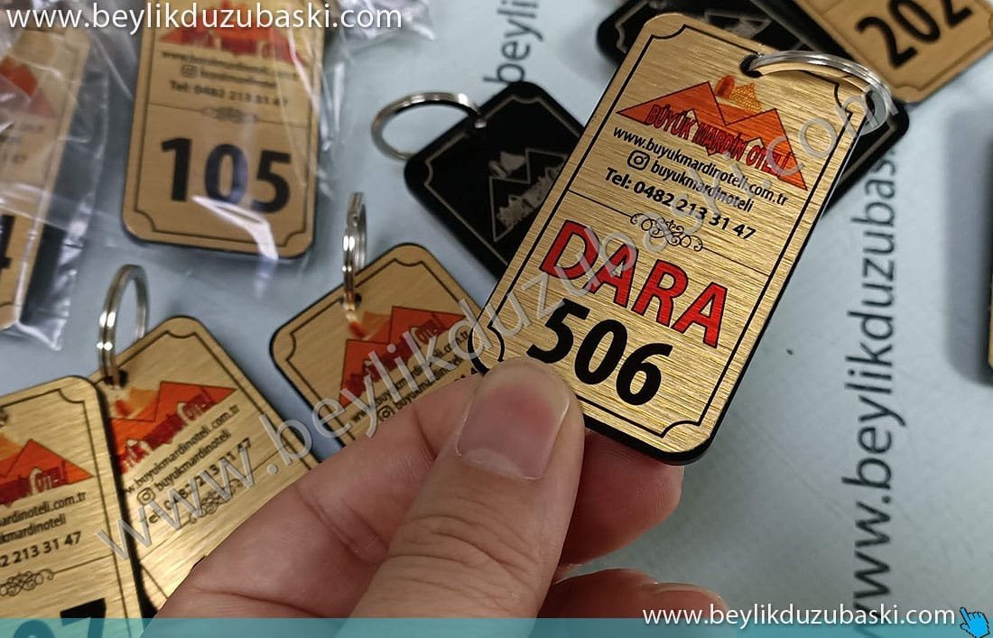 Otel odası anahtarlığı, kapı otomatiğine giren anahtarlık, oda numarası yazılı, yıpranmayan, çıkmayan, kazınmayan, kalıcı anahtarlık imalat