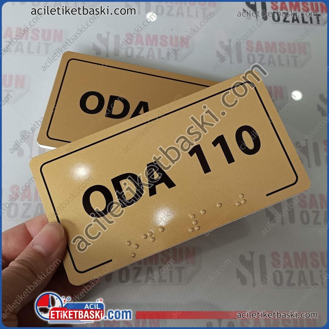 Otel odası görme engelli Braille alfabeli kapı tabelası ürünlerimiz Samsun baskı merkezimizde dış mekan dayanıklılığı ve yüksek çözünürlük kalitesiyle profesyonel malzemeler üzerine kişiye özel veya kurumsal ihtiyaçlara uygun olarak aynı gün üretilip hızlı kargo avantajıyla sunulmaktadır.