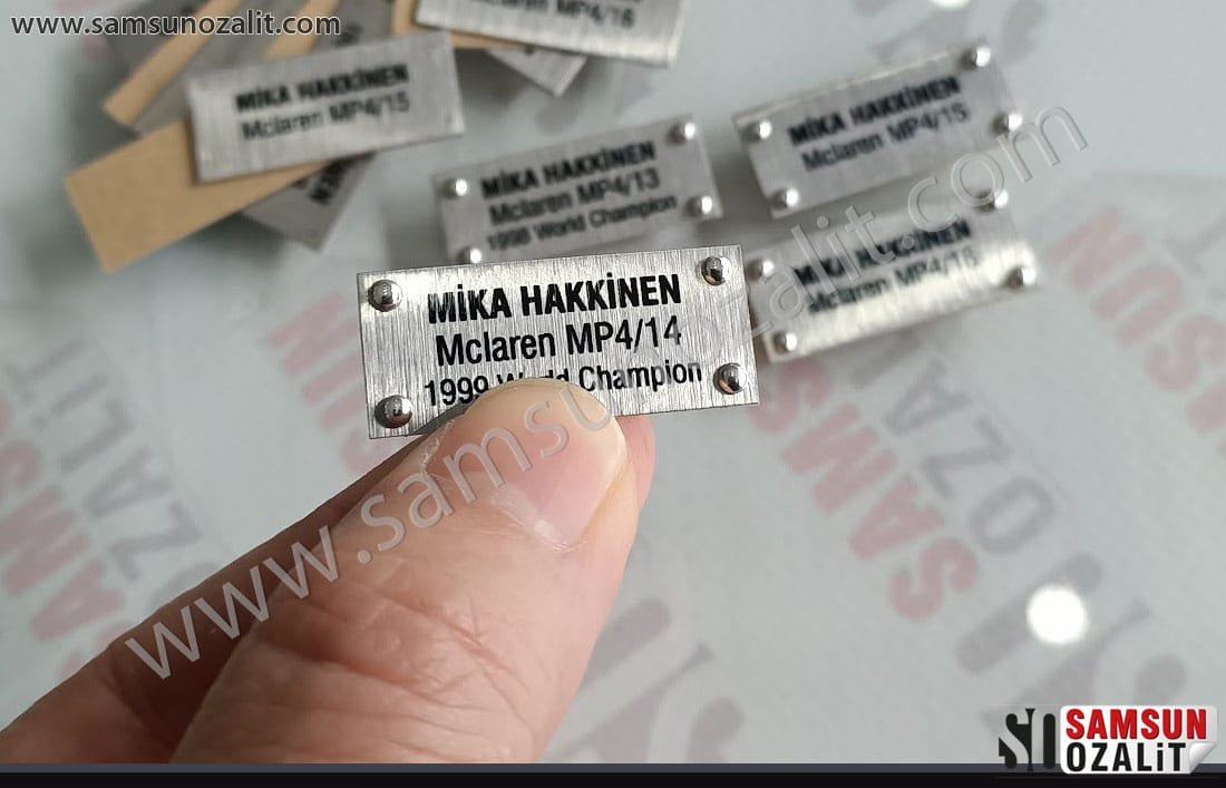 perçinli metal plaka, köşeleri kabartmalı, metal etiket, kaliteli metal levha baskısı, aynı gün gönderim, uygun fiyat, köşelerdeki metal parçalar işlevsel değildir, göstermelik konmuştur, arkası bantlı üründür, metal plaka, metal etiket imalat