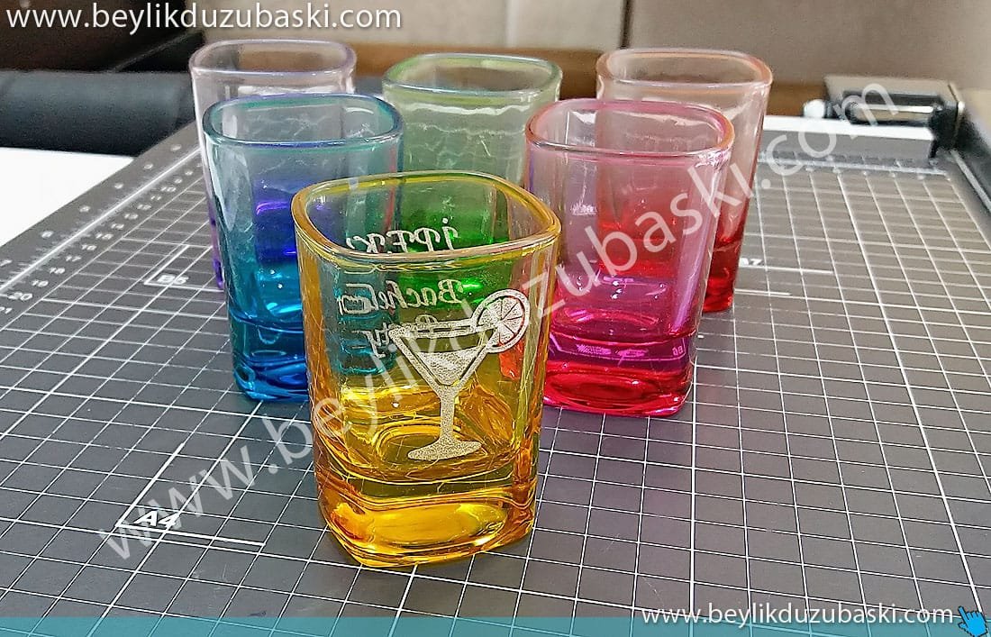 shot bardak, lazer ile isim ve logo baskısı yapılmaktadır, acil shot bardak baskısı, cam üzerine baskı, lazer baskı