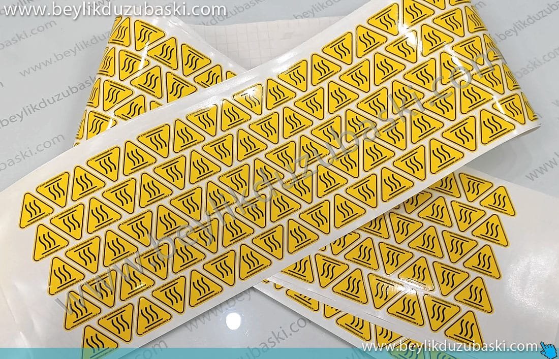 sıcaklık uyarı etiketi, baskes etiket imalatı, acil makina etiketi, sarı etiket baskısı
