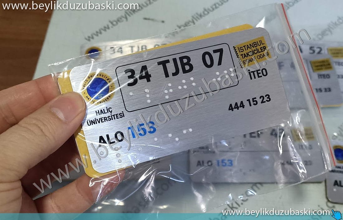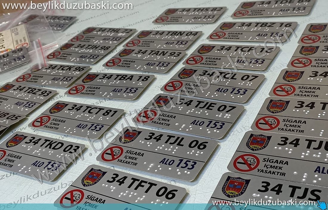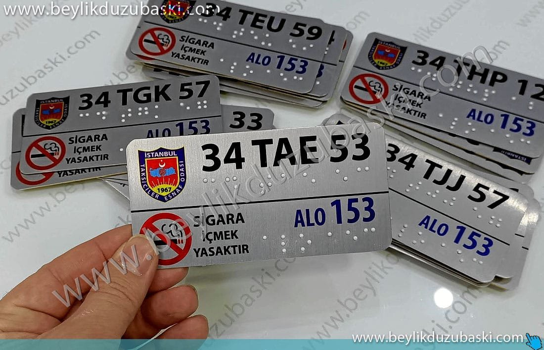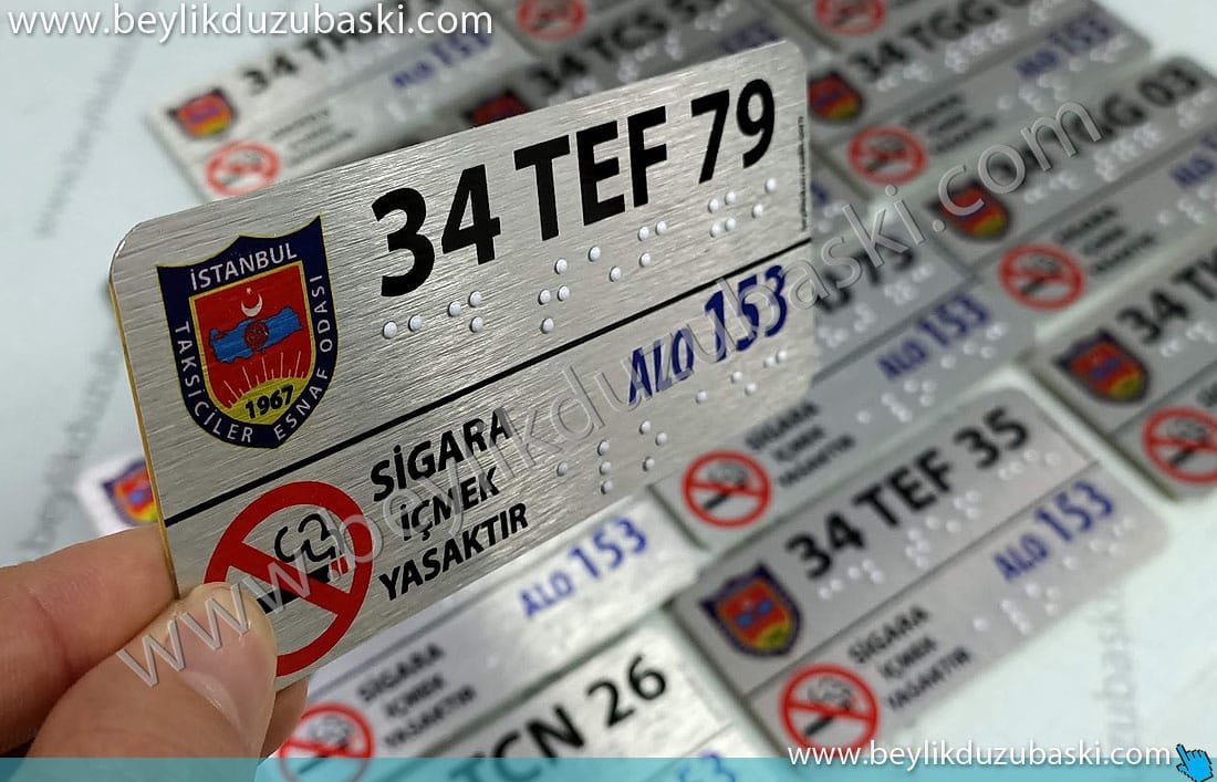 Taksi körler alfabesi baskılı metal plaka imalat