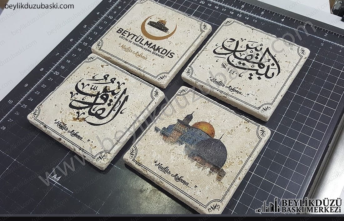 bardak altı uv baskı, taş üzerine uv baskı, renkli baskı, taş üzerine baskı yapılmaktadır