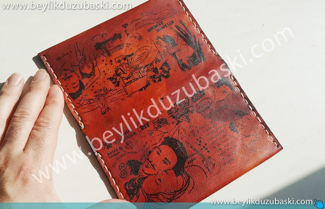 deri üzerine lazer ile baskı, yakma baskı, kazıma baskı, deri baskı, kaliteli baskı, tasarım desteği verilir, ürünü müşteri getirir, sadece baskı yapılmıştır, laser printing on leather, burning printing, scraping printing, leather printing, quality printing, design support is provided, the customer brings the product, only the printing is done