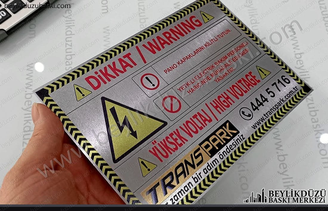 dış mekan dayanıklı, UV baskılı, alüminyum metal plaka, üzeri vernik korumalı, UV baskılı, kaliteli, dış mekana uygun, uyarı levhası, metal plaka baskı